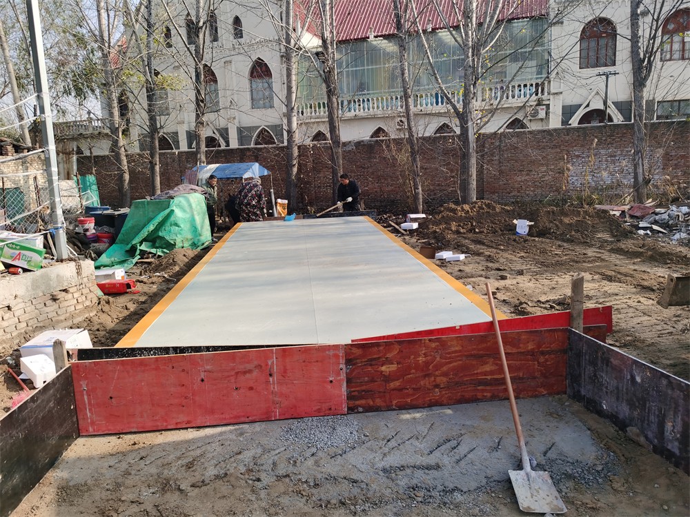 山東菏澤東明縣潘莊四柳村沙石料廠100噸地磅施工案例